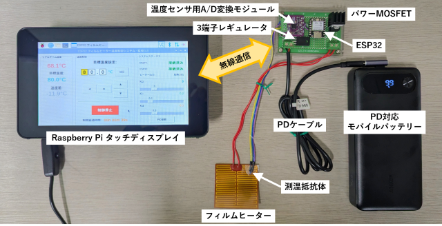 - 温度制御部:ESP32、フィルムヒーター、パワーMOSFET
